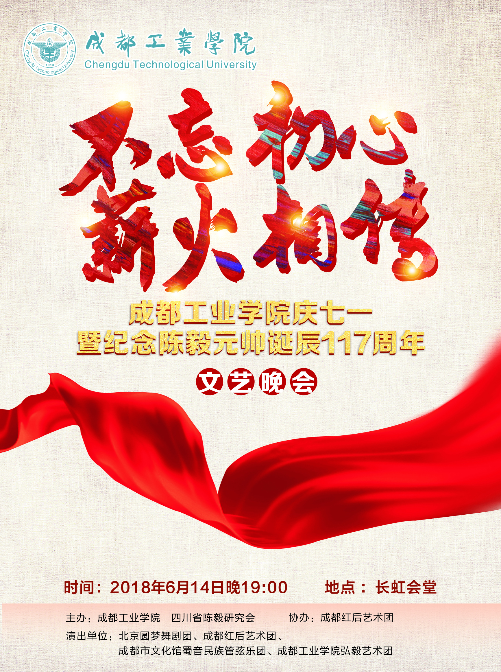 关于举办纪念中国共产党成立97周年暨纪念陈毅元帅诞辰117周年大型文艺晚会的通知